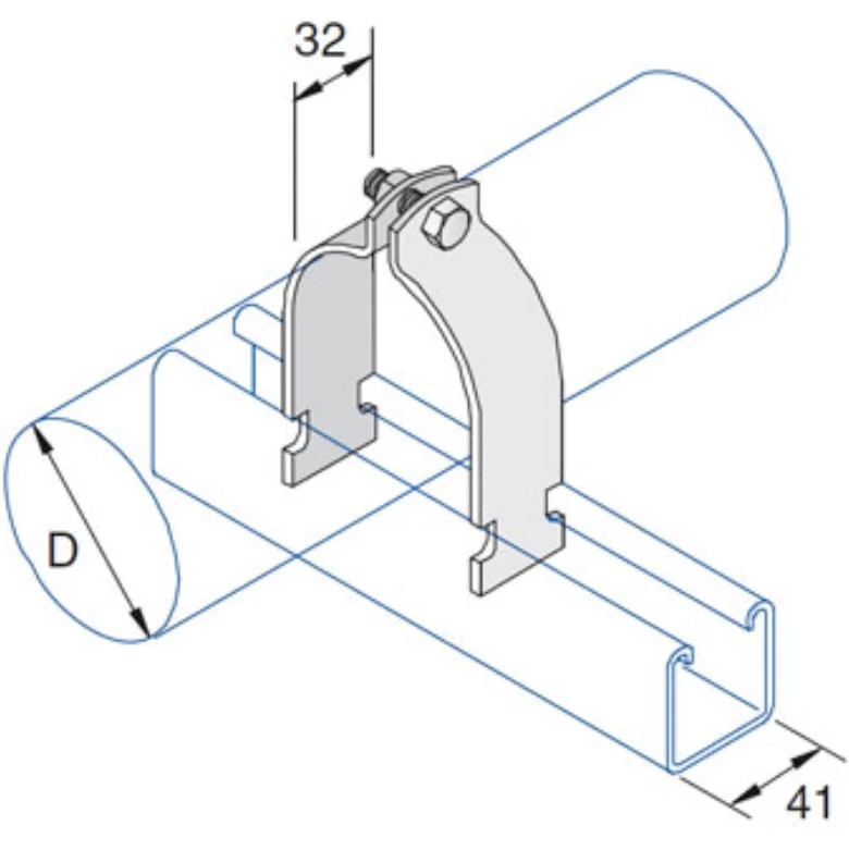 Unistrut Pipe Clamp 42.9-46.8mm Steel Pre-Galvanised