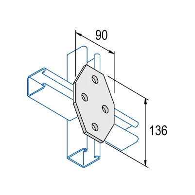 Unistrut Plate Flat 4 Hole For Cross 136X90mm Hdg