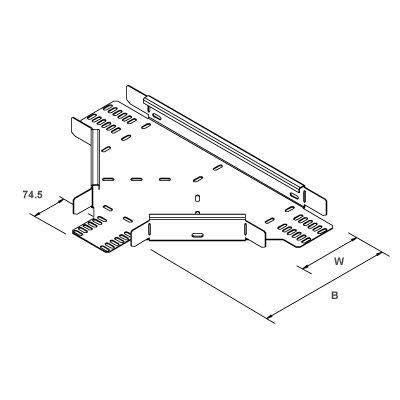 Technical Specifications Technical Specifications Tee for cable tray Material Steel Construction type Horizontal tee Colour Zinc Model Integrated coupler Surface protection Pre-galvanised Suitable for cable tray width 100 mm Suitable for cable tray height 50 mm Stainless steel, pickled No NATO-mounting holes No Suitable for circuit integrity Yes
