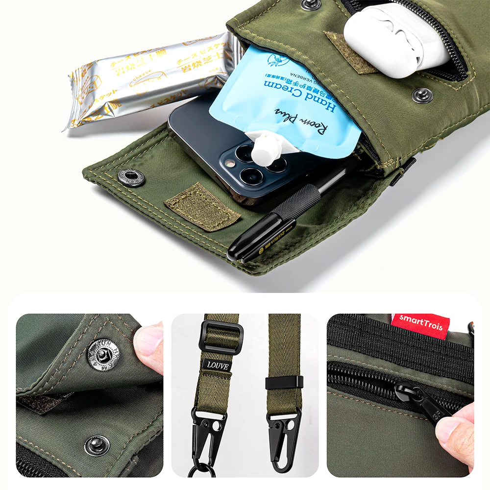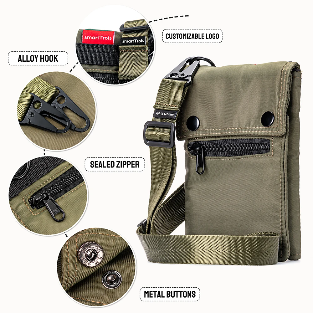 Nylon Outdoor Phone Bag Material Nylon Function Crossbody Package Opp bag or Customize Colors Black, Light Green, Black Customize Logo Silk Print, Embrossing Production Display Nylon Outdoor Phone Bag Features: 1. Nylon Material 2. Large Capacity 3. Custom Your Own Design and Logo Click Here For Inquiry Structure Display Click Here To Ask For More Detail Design Displayview more >> Recommended by seller Premium Vegan Leather Mobile Phone case Crossbody Soft PU Phone Covers for iphone 13.