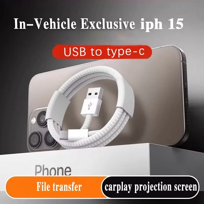 USB Type C Carplay Cable & Samsung 35W Fast Charging 1.5M Nylon Braided Phone Data Cable Support Carplay for iPhone 15 Pro Max