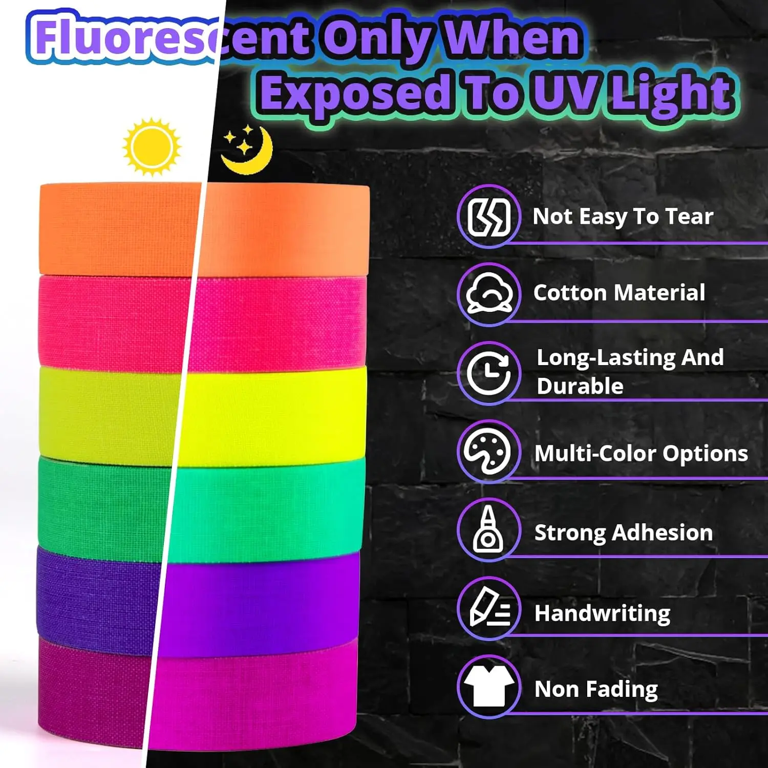 UV Glow Tape Blacklight Reactive Fluorescent Cloth Neon Gaffer Tape Super Bright Luminous Tape for Party Supplies Decorations