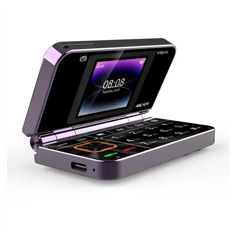 V 8 PRO Flip Mobile Phone 2G GSM 1.77″ Display Auto Call Recorder Speed Dial 32+64MB Memory 2 SIMs Foldable Keyboard Telephone