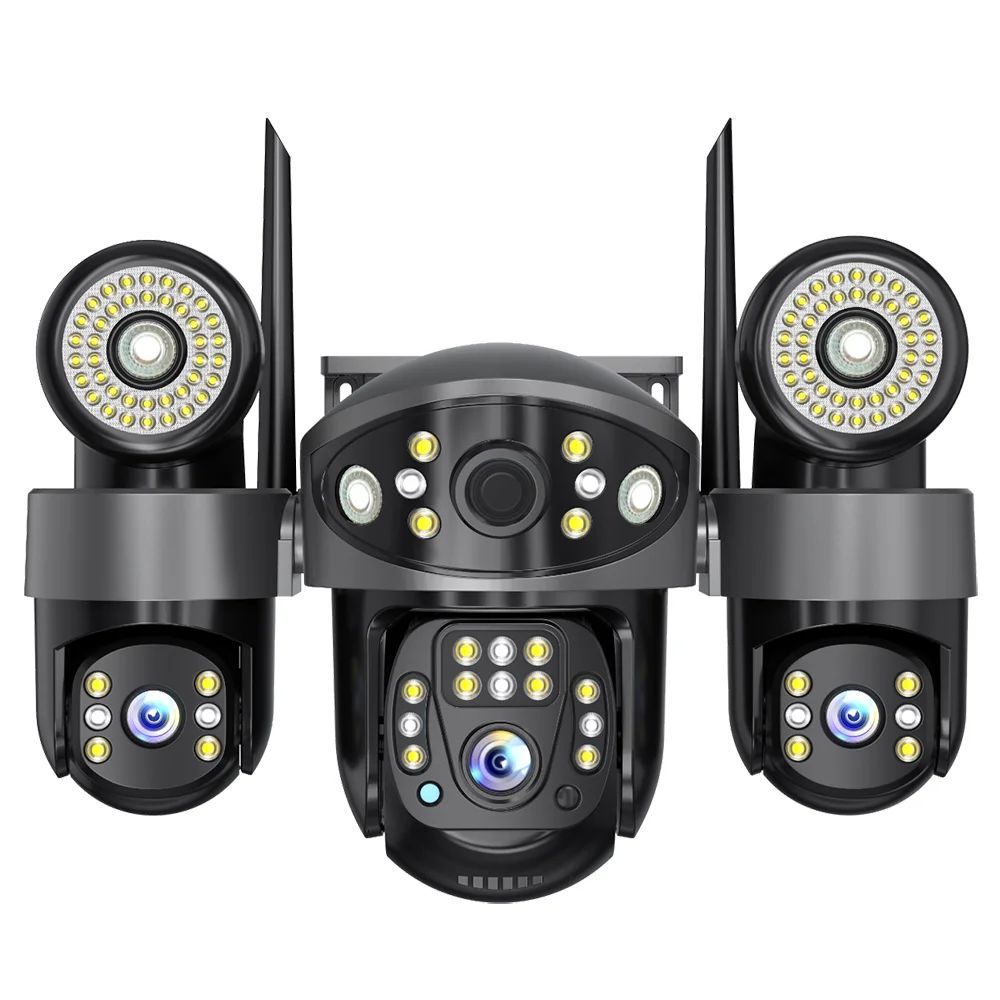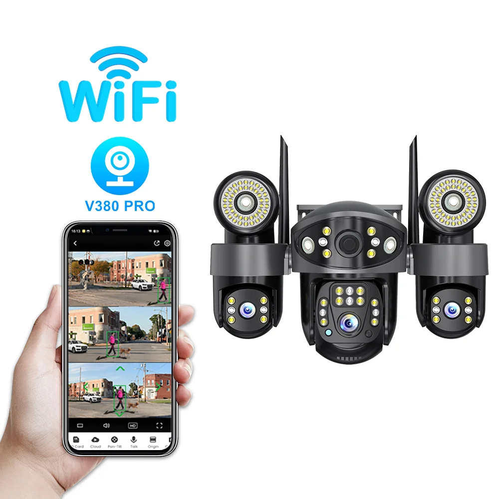 V380 3 Lens and 3 Screens PTZ Camera Street Light 6MP Outdoor WiFi Security CCTV Triple-Lens Network PTZ Triple Screens Camera