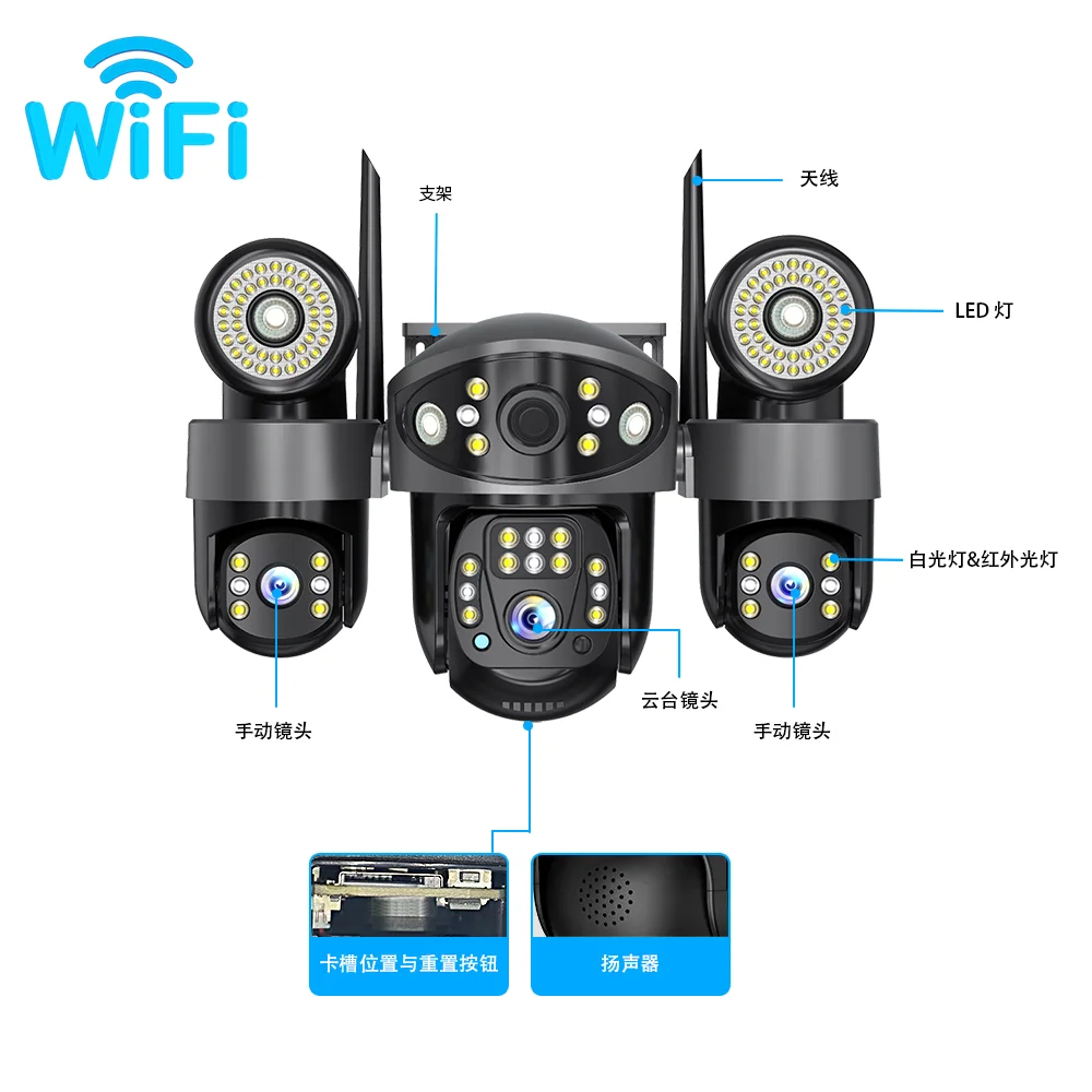 | Product name | V380 CCTV Outdoor IP Triple-Lens Network PTZ Triple Screens Camera |