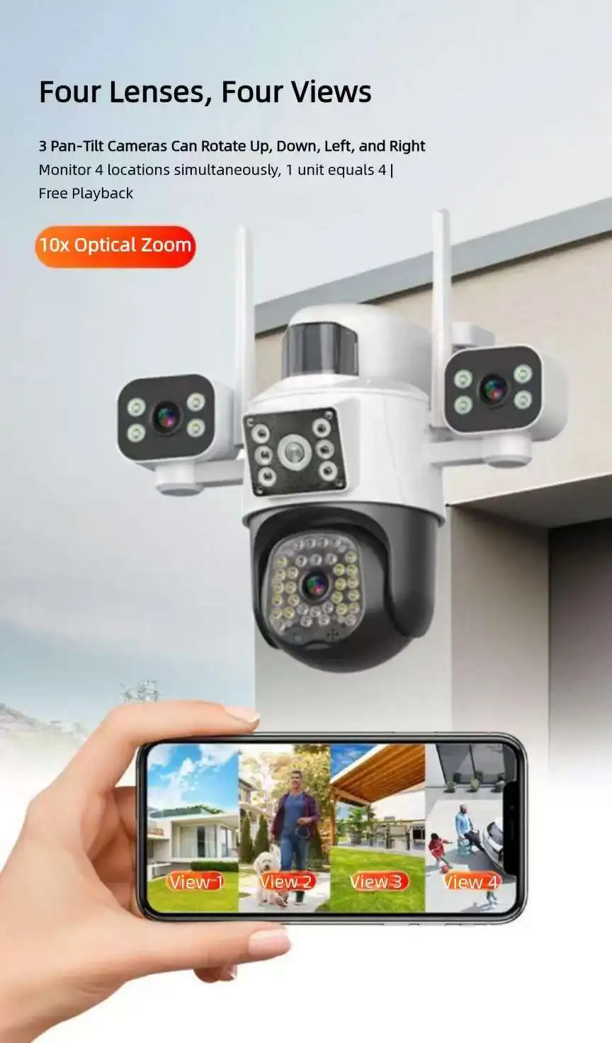 | Product name | 4 lens Outdoor WiFi Camera Cloud storage 4G network PTZ camera |