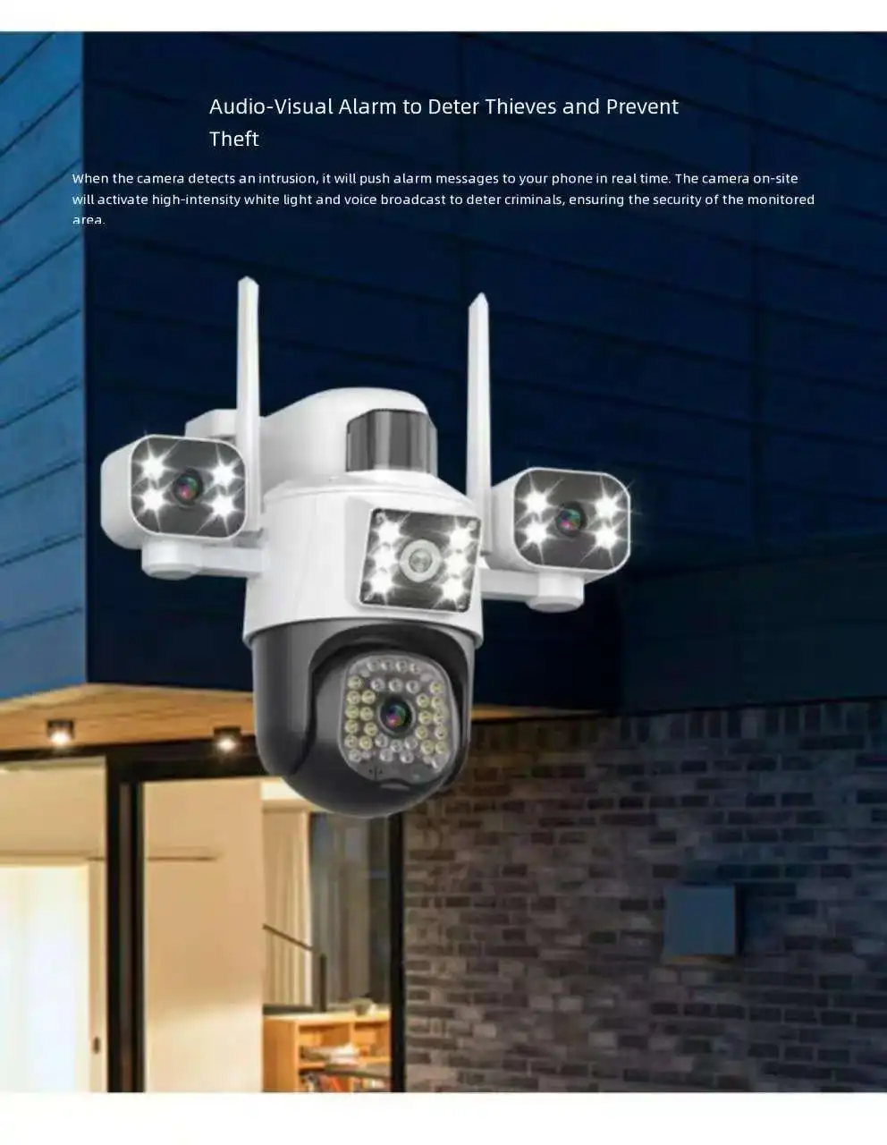 | Function | Two-Way Audio, Built-In Mic, Night Vision, Waterproof / Weatherproof, Wide Angle, Built-In Siren, Pan-Tilt, Full Color, Alarm I/O |