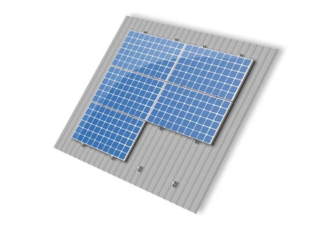 The ValkPitched – Trapezoidal Clamp has been specially designed for trapezoidal roofs. It involves a mini-rail system which quickly affixes short lengths of profile to the roof covering. This is achieved with special thin sheet screws or blind rivets. The profile lengths can be set vertically for landscape or horizontally for portrait mounting. The length depends on the distance between ridges. This system uses adjustable, universal panel clamps and is available in plain aluminium or semi-black versions. · · · Clamp system with universal mid and end panel clamps (H 28-40 mm) · · Logistical advantage due to short profile lengths · · If desired, long lengths also available · · Waterproof mounting system with special screws or rivets