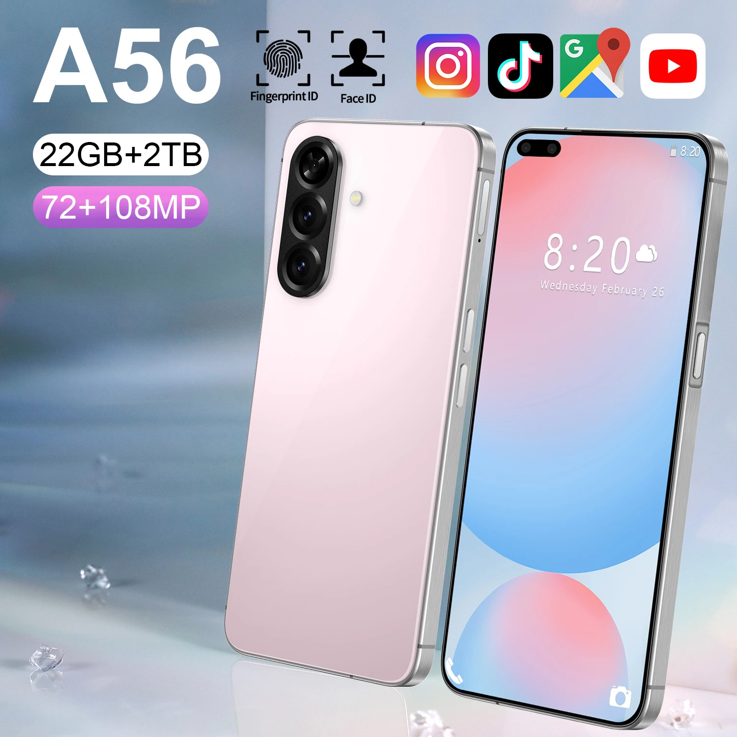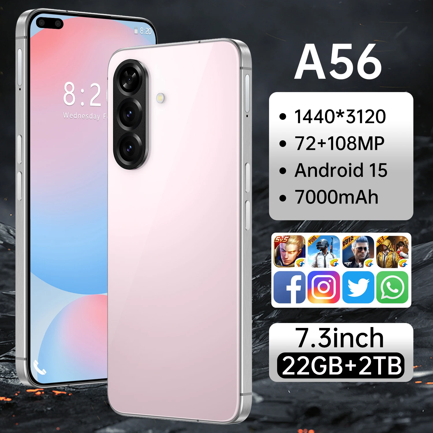 Value Deal 16G+1TB 5G Smartphone A56 New Mobile Phone 7.3inch Large-Screen 108MP 144Hz Big Screen Global Cell Phones