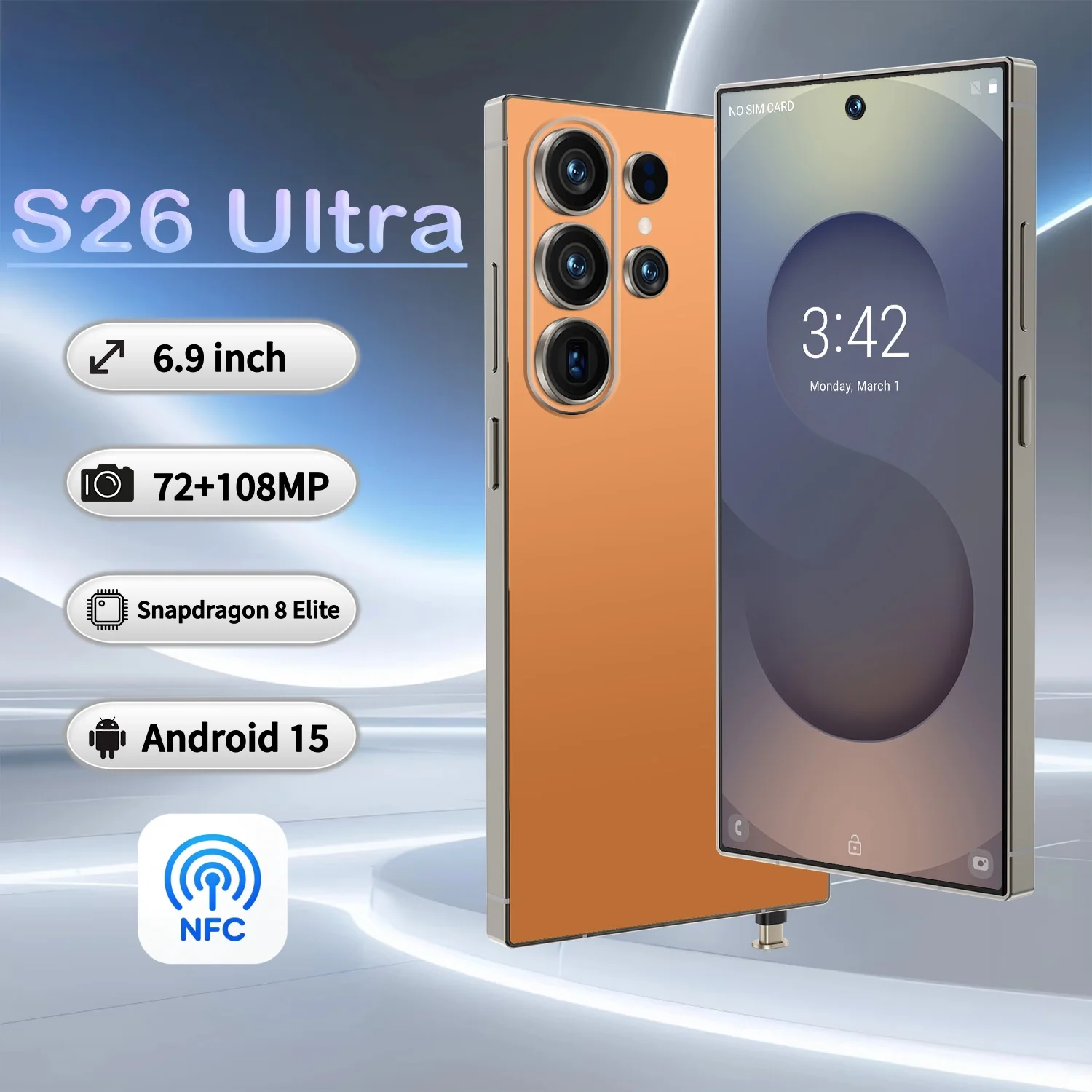Value Deal S26 Ultra 5G Smartphone 16GB+1TB Camera Unlocked Android Mobile Phone with NFC Face ID Fingerprint Dual SIM