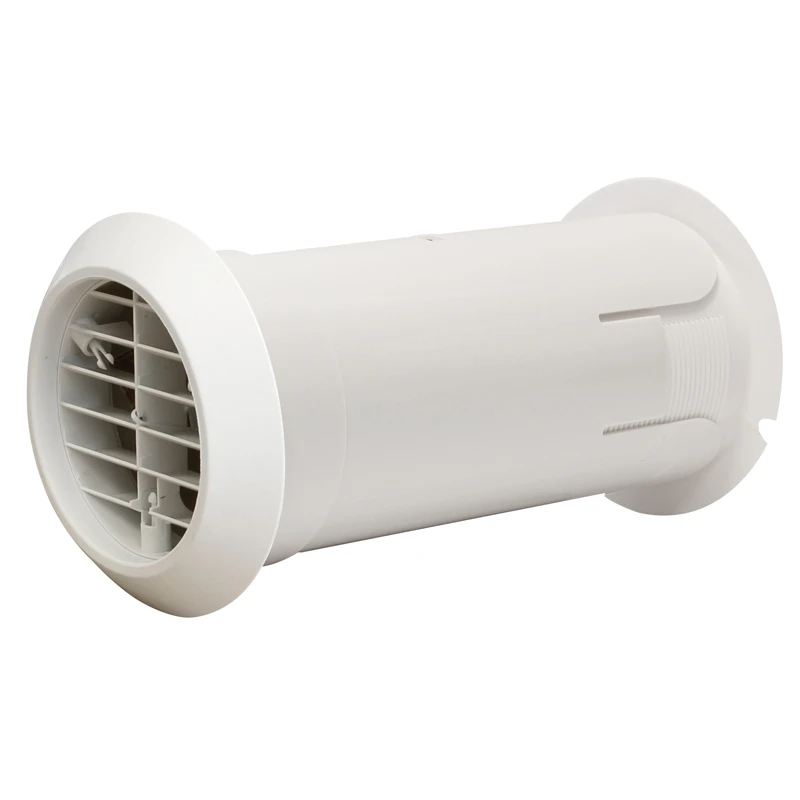 The NEW Internal Fit Wall Kit is designed to simplify installation and improve the finish of 100mm through the wall installations, also providing an external grille and water ingress protection shroud.The Wall Kit is fully installed from inside the building, avoiding the need for scaffolding and significantly reducing the cost and complexity associated with these sites. After core-drilling a 117mm hole, or utilising an appropriate existing hole, the Kit simply pushes through from the inside of the building. Spring pins secure the external grille in position and the external shroud deploys around the grille covering up break-out from the external surface.Quick and easy to install, the Internal Fit Wall Kit cuts down time on site when compared to traditional methods using flexi-duct. Installers no longer need to spend time fixing flexi-duct to fans and grilles using jubilee clips, or going outside to fit the grille. The tubes extend to accommodate wall thicknesses from 225mm up to 390mm and lock into position for a secure fit. The internal flange is also flexible enough to accommodate deviations in the internal surface finish.The external grille free area is greater than 90% of the area of the duct making it suitable for continuous running systems as well as for intermittent fans.The Internal Fit Wall Kit has optional backdraught shutter models. Particularly useful with intermittent fans, the backdraught shutter will ensure no draughts and gusts come in to the home through the wall kit. · · · Ideal for high-rise applications · · Suitable for 100mm fans · · Quick & easy installation · · Extendable length · · Fits entirely from inside the property · · Reduces water ingress · · Includes low-resistance external grille · · Suitable as a passive air grille · · Covers external break-out