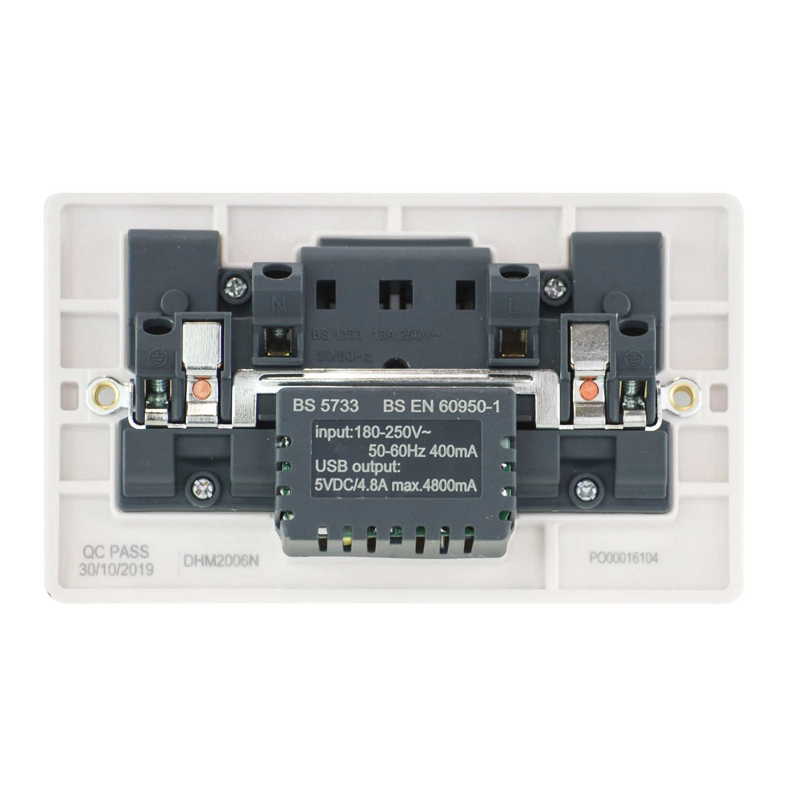 2 Gang Switched Socket 13A + 4.8A USB Outlet, The Hamilton Verve range of Wiring Accessories feature a modern curved aesthetic and slim design for todays modern enviroment. The range also features a 20 year guarantee · · · New 4.8A Output · · Quicker charging · · Larger terminals · · Angled terminals · · Pozi screws