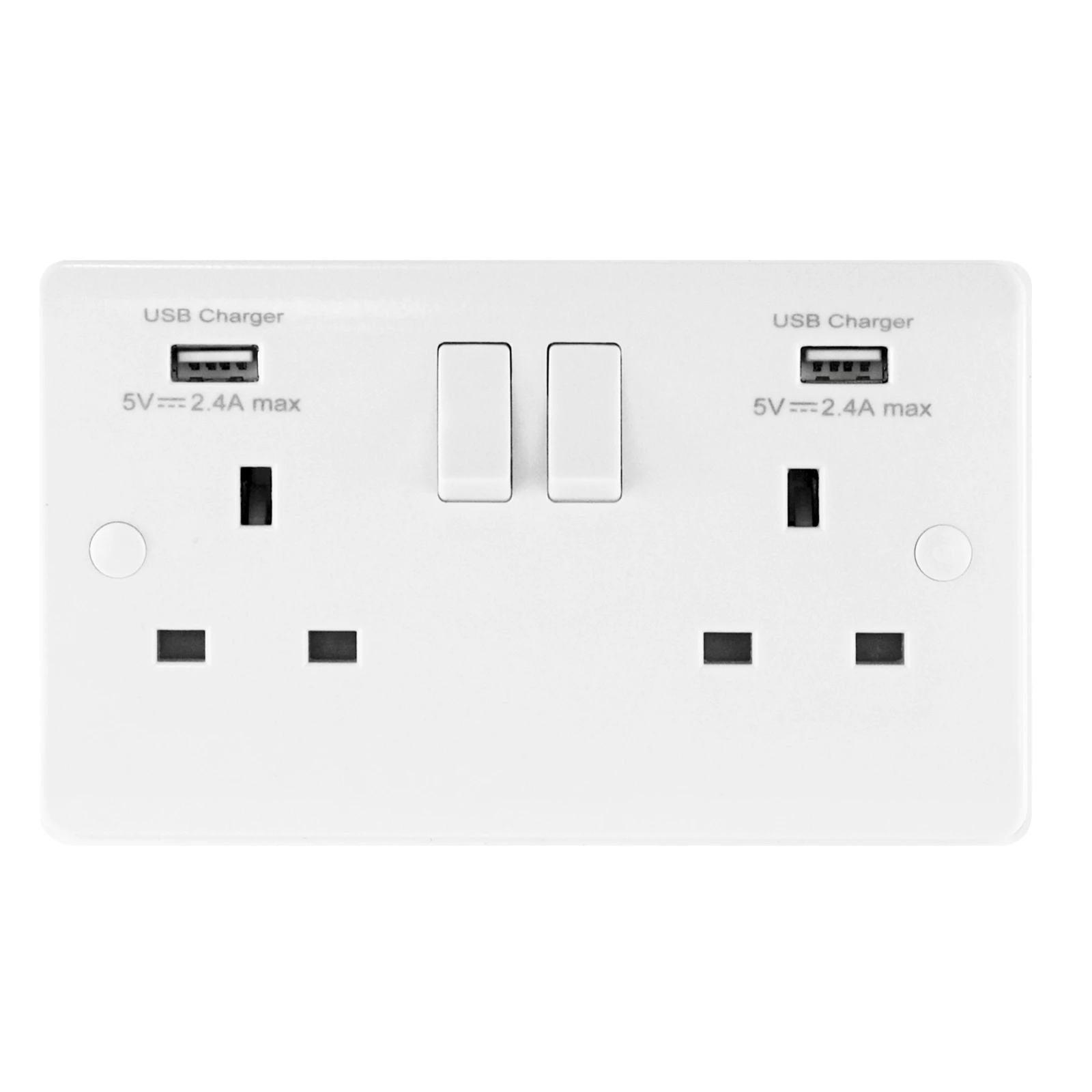 Verve HM2006N Single Socket 2 Gang 13A Double Pole Switched White with 2 USB Ultra Outlets 2×2.4A
