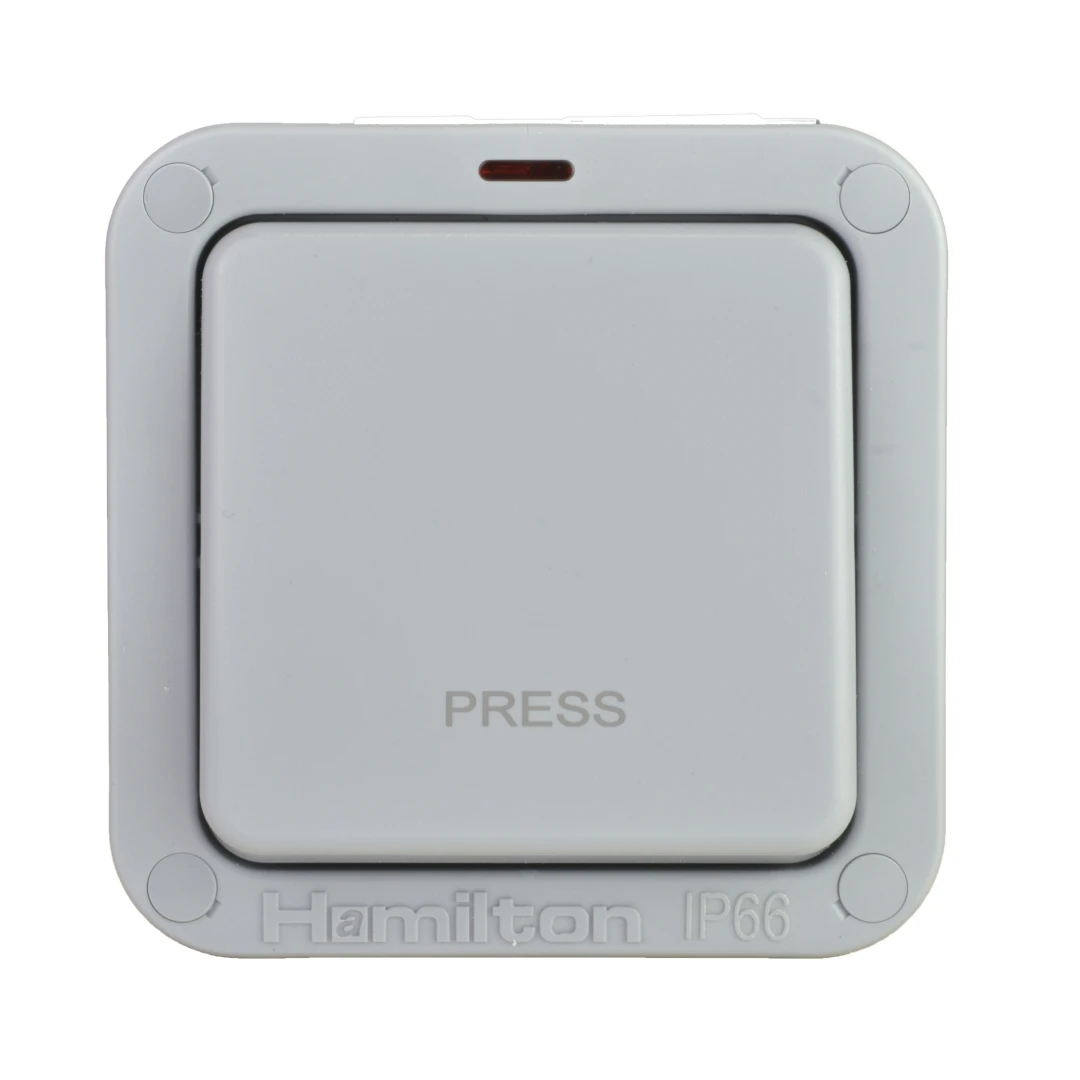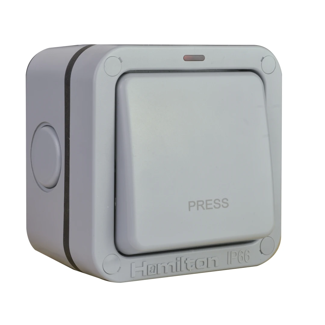 Verve HM5023 Grey IP66 20AX 1G 2W Retractive Rocker + Neon “Press” Grey