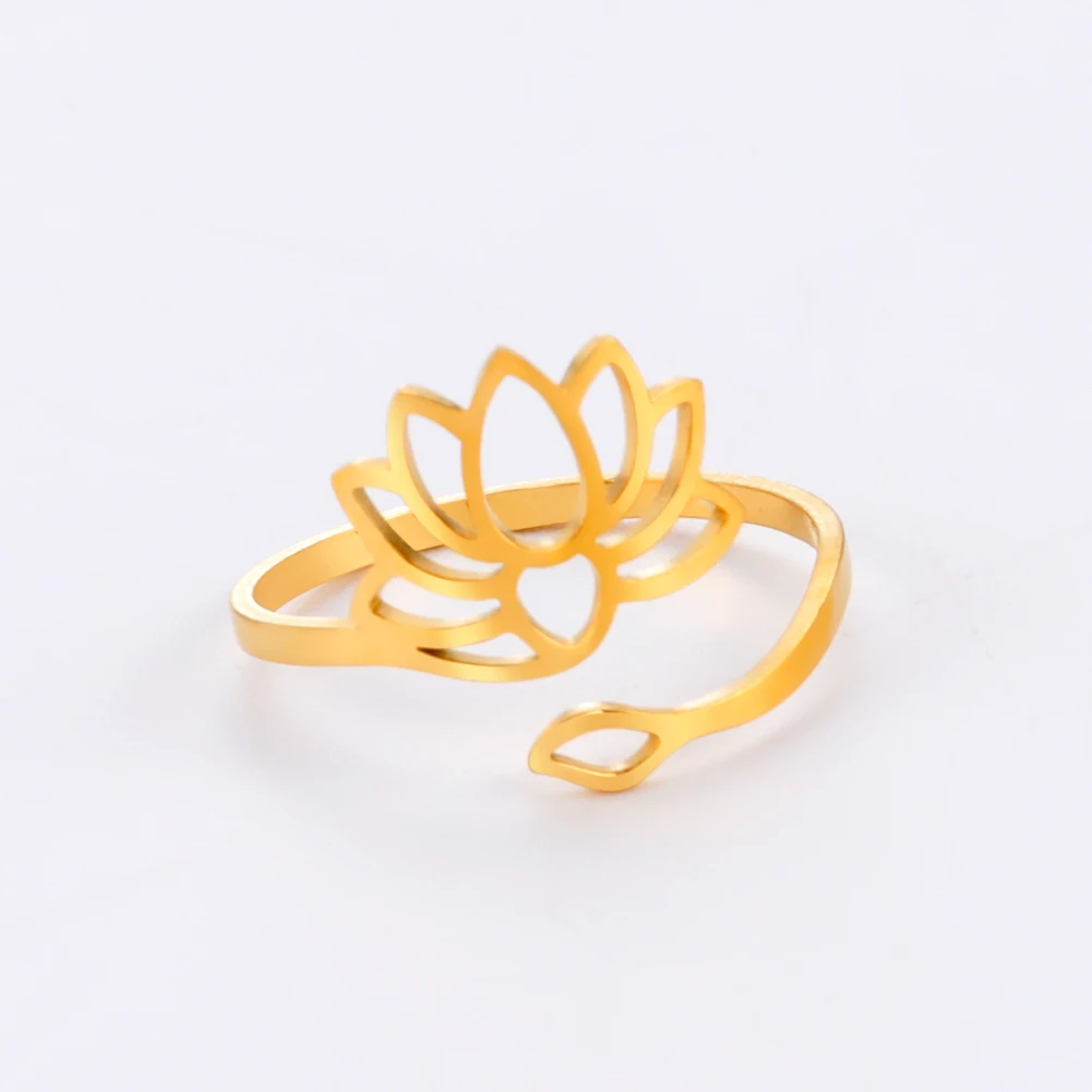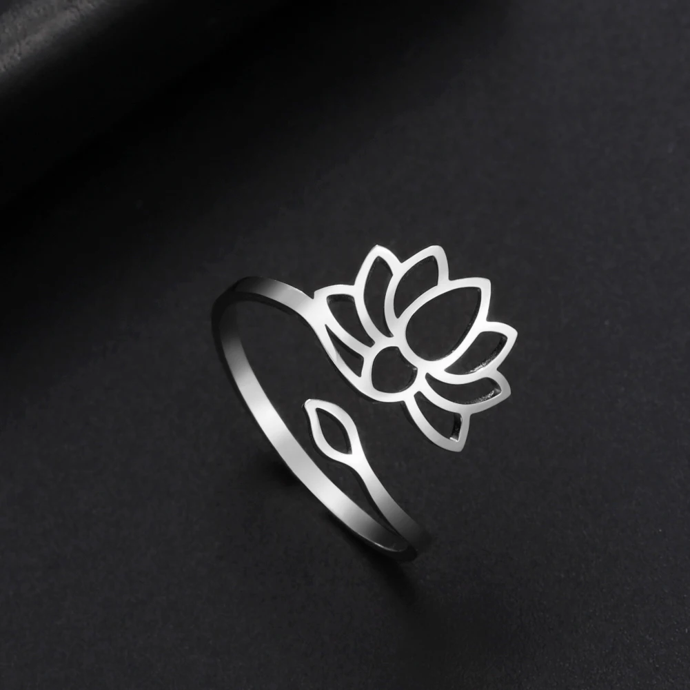 Vintage Lotus Flower Rings for Women Stainless Steel Elegant Adjustable Finger Ring Yoga Chakra Buddhism Jewelry Gifts