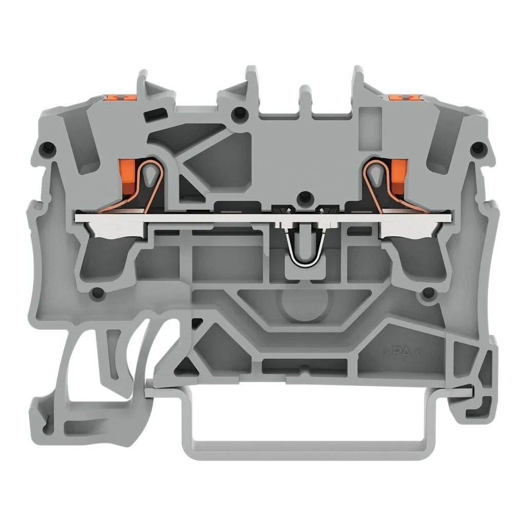 Wago 2-Conductor Through Terminal Block With Push-Button 2.5mm² With Test Port Suitable For Ex E Ii Applications Side And Center Marking For Din-Rail 35 X 15 And 35 X 7.5 Push-In Cage Clamp® 2.5mm² Grey