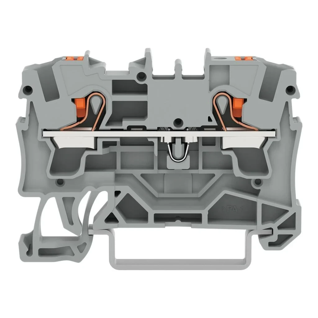 Wago 2-Conductor Through Terminal Block With Push-Button 4mm² With Test Port Side And Center Marking For Din-Rail 35 X 15 And 35 X 7.5 Push-In Cage Clamp 4mm² Grey