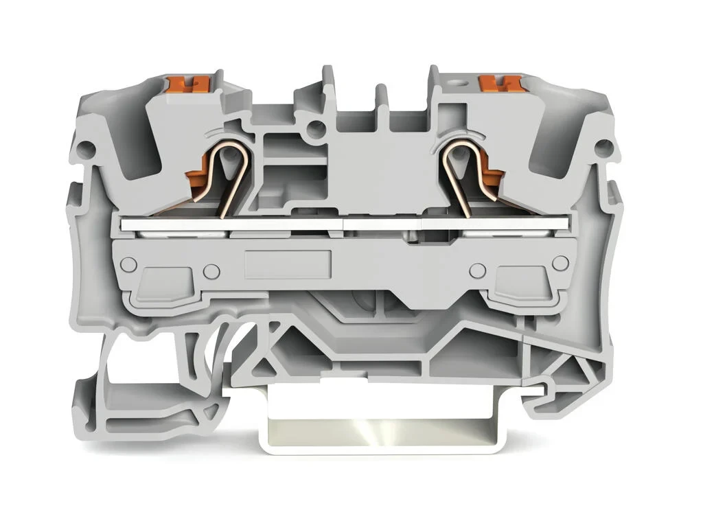 Wago 2-Conductor Through Terminal Block With Push-Button 6mm² With Test Port Side And Center Marking For Din-Rail 35 X 15 And 35 X 7.5 Push-In Cage Clamp 6mm² Grey