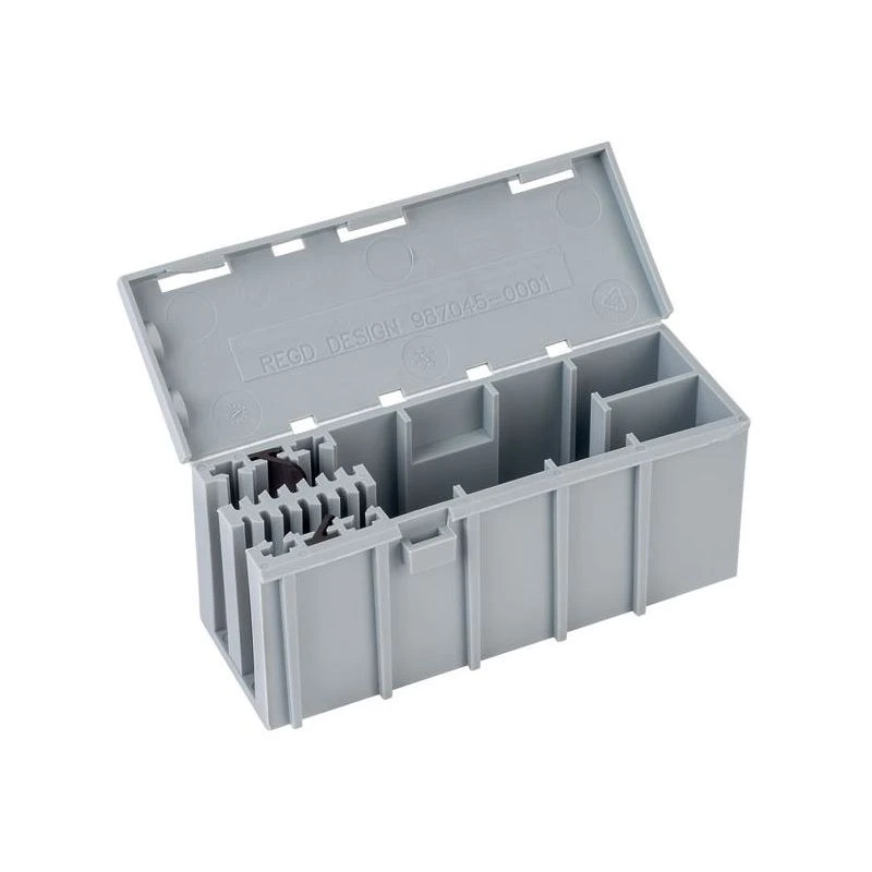 A multipurpose electrical junction enclosure that has been designed for use with WAGO 222 and 773 series connectors. The WAGOBOX is easier to use, quicker to fit and more configurable than any other junction box of its size. It is the first of its type and redefines the standard for general purpose domestic and commercial junction boxes. · · · No awkward connections in small spaces · · Easy to use – no screws or fiddly clamp bars · · Uses simple to fit WAGO 773 and 222 series connectors · · Supports up to 6 cables · · Fits through a 60mm diameter spotlight hole · · Dimensions: 108 x 44 x 39mm · · Fast – installing a WAGOBOX can take as little as 25% of the time it takes to install a screw terminal box · · Meets all the requirements of the 17th Edition of BS 7671