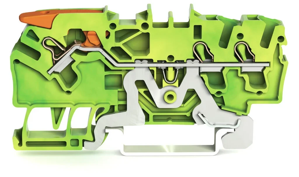 Wago 3-Conductor Ground Terminal Block; With Lever And Push-In Cage Clamp 2.5mm With Test Port; Side And Center Marking; For Din-Rail 35 X 15 And 35 X 7.5; Push-In Cage Clamp; 2.5mm; Green-Yellow