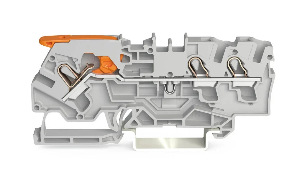 Wago 3-Conductor Through Terminal Block With Lever And Push-In Cage Clamp 4mm With Test Portside And Center Markingfor Din-Rail 35 X 15 And 35 X 7.5 Push-In Cage Clamp 4mm Grey