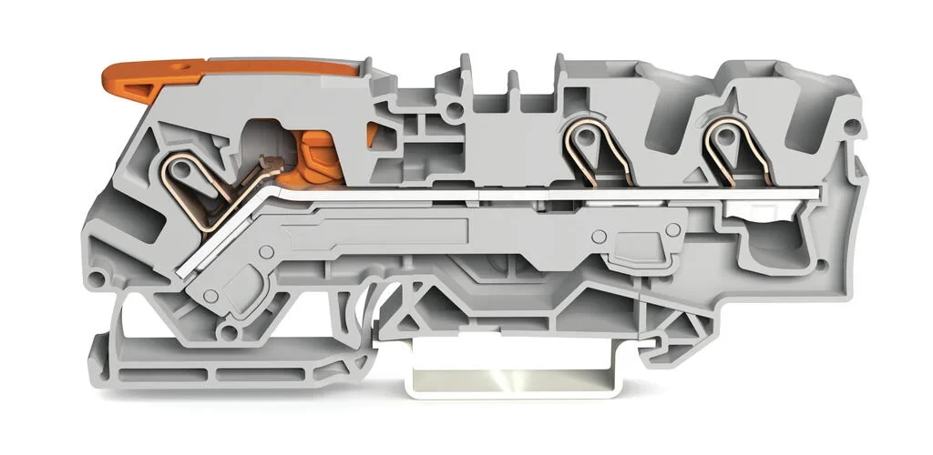 Wago 3-Conductor Through Terminal Block With Lever And Push-In Cage Clamp 6mm With Test Port Side And Center Marking For Din-Rail 35 X 15 And 35 X 7.5 Push-In Cage Clamp 6mm Grey