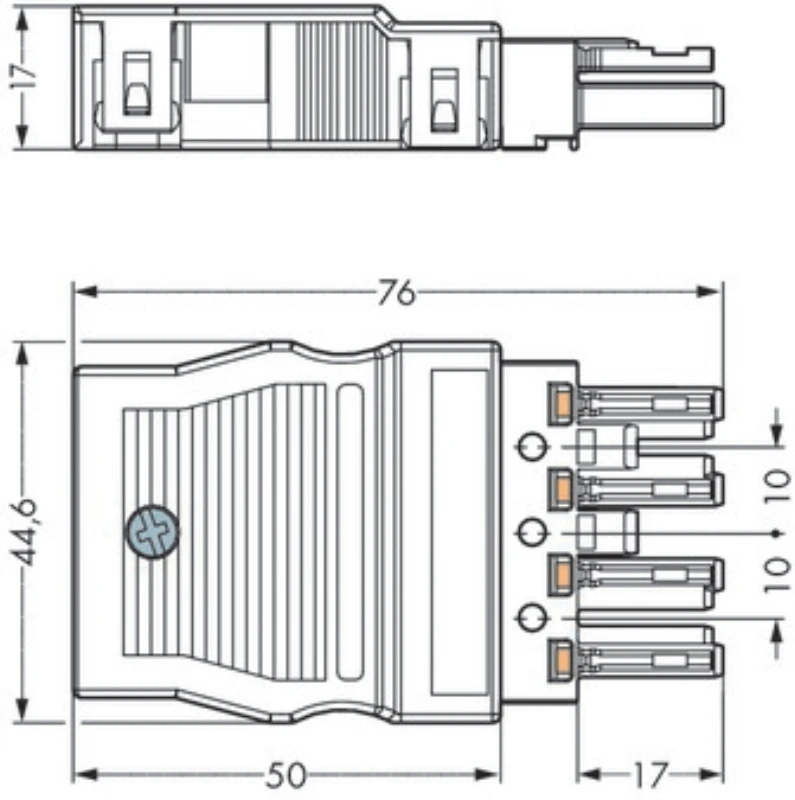 Technical Specifications Technical Specifications Plug-in connector for plug-in building installation Model Bus Type of locking None Colour coding/contact insert White Housing material Polyamide (PA) Degree of protection (IP rating) IP20 Connection type Spring clamp connection Rated voltage 250 V Continuity resistance 3 mOhm Number of poles 3 Height 15 mm Rated current 25 A Length 76 mm Width 218 mm Pole codification L, N, PE Rated surge voltage 4 kV Pollution degree 3 Number of connections per pole 2 Max. continuous temperature resistance contact part 85 °C Max. continuous temperature resistance strain relief 85 °C Connection cross section (solid-core) 0.5 – 4 mm² Connection cross section (fine-strand) 5.4 – 4 mm² Cable diameter 8 – 11.5 mm Halogen free No Mechanical coding Yes With strain relief Yes · Technical Data Sheet – Click to Download · Technical Data Sheet – Click to Download · Technical Data Sheet – Click to Download