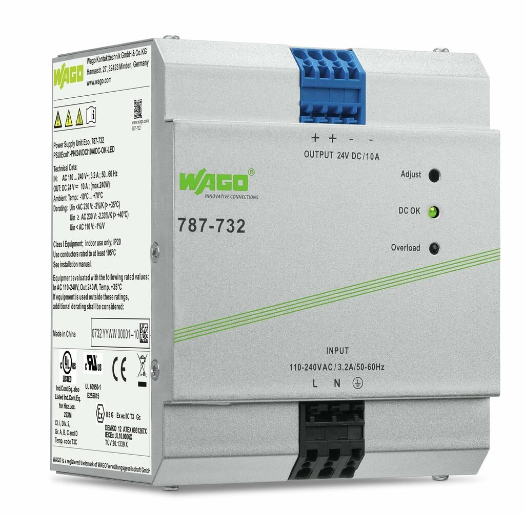 Wago Power Supply Eco 1-Phase 24 VDC Output Voltage 10 A Output Current Dc-Ok Led 4mm²