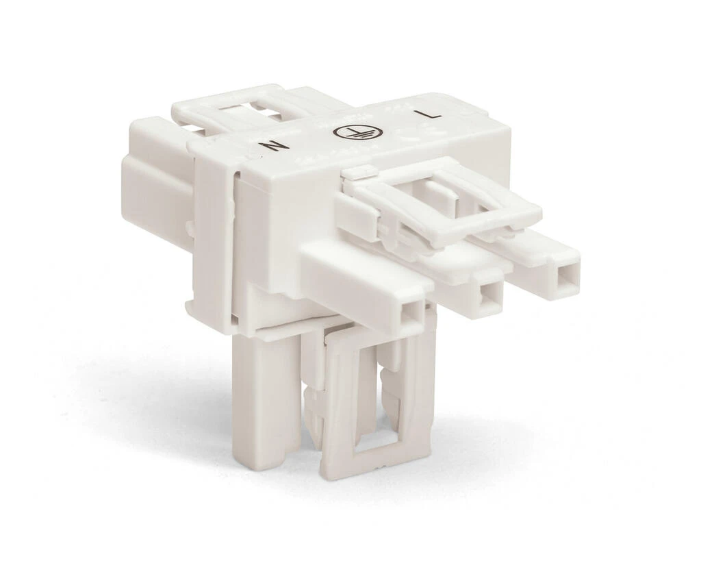Wago T-Distribution Connector 3-Pole Cod. A 1 Input 2 Outputs 3 Locking Levers For Flying Leads White