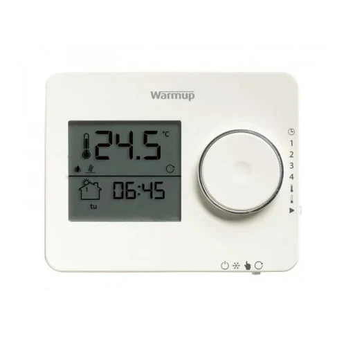Warmup Tempo Digital Thermostat enables end users to choose the time as easily as they would with a watch or clock and quickly set their programs, heat on when they want it and off when they do not need it. Suitable with all Warmup underfloor heating systems, the Tempo thermostat allows you to control the temperature of your underfloor heating to give you comfort, warmth and luxury to match your specific needs. Easy-to-use interface and intuitive design. With Tempo, end users can simply program their settings to suit individual requirements, warmer when they are at home, lower when they are away or asleep. Set-up takes just minutes to get right the first time. It will help avoid wasting energy and achieve savings on utility bills. Its Proportional Adaptive function ensures the room does not over-heat, reducing wasted energy whilst also protecting the components inside. The Early Start algorithm learns how long it takes to warm the room and activates the heating so its up to temperature at the right time. · · · Stylish and contemporary design · · Clear screen displaying program details · · Proportional Adaptive Learning · · Easy control with dial and sliders · · BEAB Approved and CE marked meeting the highest safety standards for ultimate piece of mind