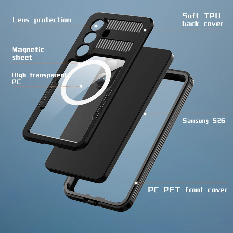 Waterproof Case Rugged Shockproof Full Body Protective Case with Lanyard Screen Protector Cover for Samsung S26