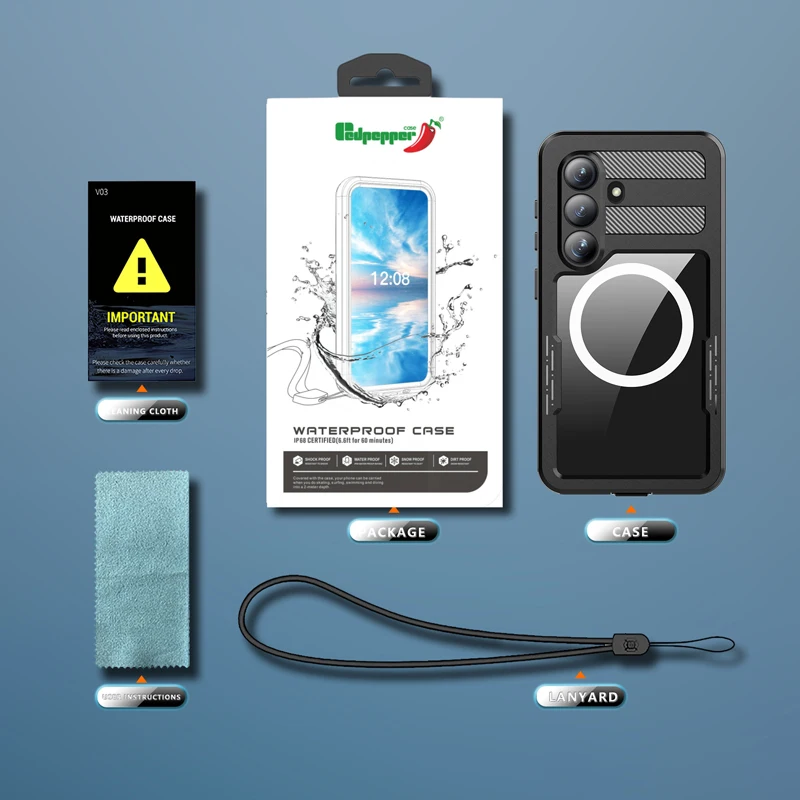 Waterproof Case Rugged Shockproof Full Body Protective Case with Lanyard Screen Protector Cover for Samsung S26 Pack of 20