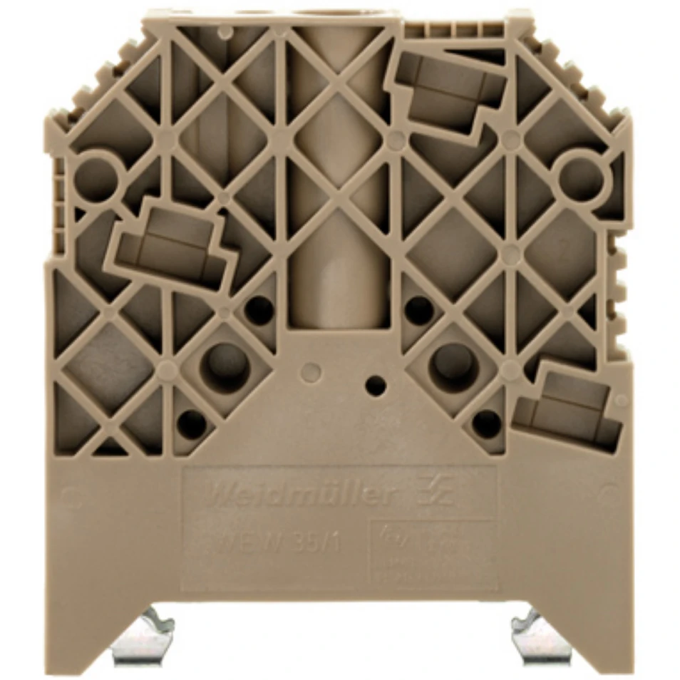Weidmuller 1059000000 dark beige TS 35 screwed direct mounting end bracket is made of PA 66 GF 30 body. The WEW 35/1 end bracket guarantees a permanent, reliable mounting on the terminal rail and prevent sliding. The end bracket includes marking options, also for group markers, and also a test plug holder. · · · Identical contours for easier planning · · The maintenance-free connection means the clamping screw does not need to be re-tightened · · Vibration-resistant connectors – ideal for applications in harsh conditions · · Quick installation as the products are delivered with clamping yoke open · · Small “W-Compact” size saves space in the panel · · Weight: 36g · · Depth: 62.5mm