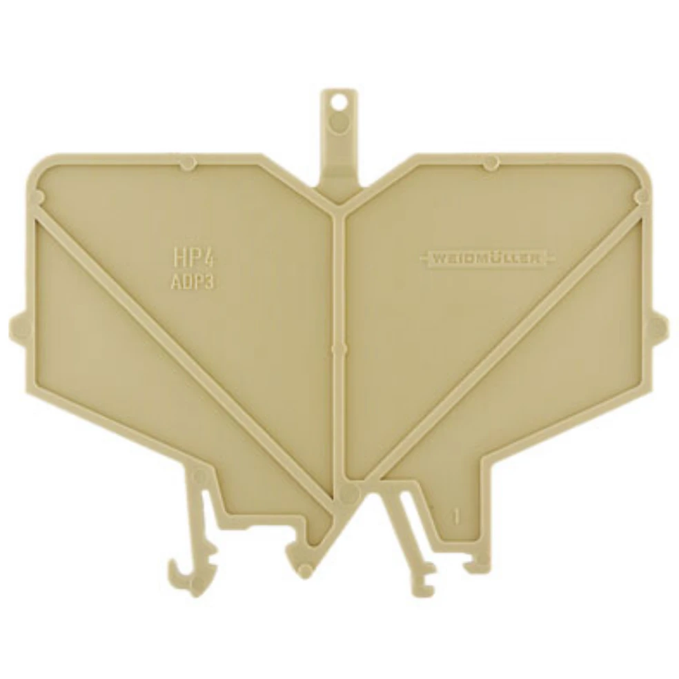 Weidmuller 0485560000 beige snap-on direct mounting fixing plate is made of PA 66 body. The HP 1 ADP1 fixing plate is suitable for use with SAK series modular terminals. Electrical systems should always be operated in a safe condition. · · · Colour: Beige · · Height: 46mm · · Material: Polyamide 66 · · Width: 2mm · · Weight: 2g · · Depth: 54mm