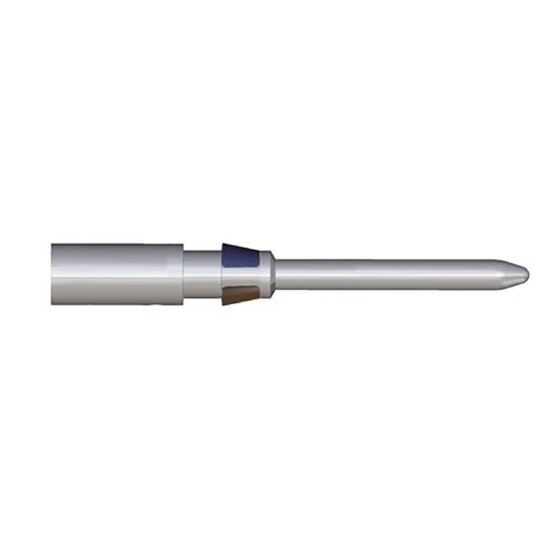 HD series male heavy-duty connector with crimp connection. The HDC-C-HD-SM2.5AG connector is made of silver plated copper alloy. Crimp provide a electrical and mechanical connection between wire and contact that is both secure and reliable. The optimal crimp connection is gas-tight and corrosion-resistant. The heart of a connector is its contacts. They make up the actual connection between two conductors. The plug (male) implements the electrical connection along its outer surface. It is inserted into the socket, which conducts the electrical connection along the surface of its interior side. It is used wherever there is a need for a secure, simple and time-saving assembly of machinery and facilities. · · · Colour: Silver · · Length: 25mm · · Material: Copper Alloy · · Number of Contacts: 1 Contacts · · Range: HD · · Weight: 660g · · Diameter: 3.5mm · · Finish: Silver Plated