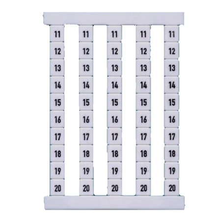 Weidmuller 0133360011 Dekafix white terminal marker suitable for all Weidmuller cable connectors. The DEK 6 FSZ 11-20 marker made of polyamide 66. It features legend 11 through 20 marking, vertical orientation and MC laser printing method. Material colour according to resistance code is 9. Dekafix (DEK) marker is the universal marker for all conductor and plug-in connectors as well as for electronic sub-assemblies. The system is ideal for short number sequences and covers a large range of ready-printed markers. Strips for fast installation in one work step. The printing is easy to read and rich in contrast. · · · Colour: White · · Length: 5mm · · Material: Polyamide 66 · · Width: 6mm · · Weight: 50g