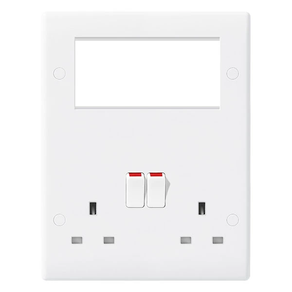 White Combination Plate 1 X 2 Gang Dp 13A Switched Sockets & 4 Euro Module (1 X 4 Em)