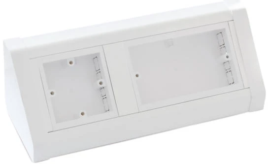 The White Pvc 1 Plus 2 Gang Single Sided-Unit from Univolt is the perfect solution for adding one or two additional sockets to your bench trunking. It is made from high quality PVC and is easy to install. The unit has a smooth, rounded design that makes it easy to grip and turn, and it has a built-in gasket that prevents leaks. · · · Height 100 mm · · Material quality Polyvinyl chloride (PVC) · · Transparent False · · Width 100 mm