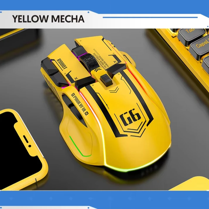 Brand HXSJ Model Name HXSJ G6 10 Button Mechanical Macro programming wireless mouse Feature Gaming /Ergonomic /Macro programming/RGB lighting 1.Product model: G6 macro gaming wireless mouse. 2.100% new mouse game. 3. High-end mechanical macro definition gaming mouse 4. Human body engineering design 5. 10 programmable keys 6. Light effect: 11 kinds RGB lighting mode switch. 7. 5-level adjustable DPI, Max.4000 DPI 8. Voltage Rating / Electric Current: DC 5V /180mA 9.Return Rate: 125HZ 10.Moving Speed: 30inch/s 11.Refresh Rate: 4000FPS 12.Acceleration: 10G 13.USB plug and play 14.Switch Life: 5 million cycle Recommended by seller Wholesale HXSJ T66 2.4G Wireless Gaming Mouse RGB Colorful Luminous 600mAh Adjustable Cordless Mice Gaming for Gamer.