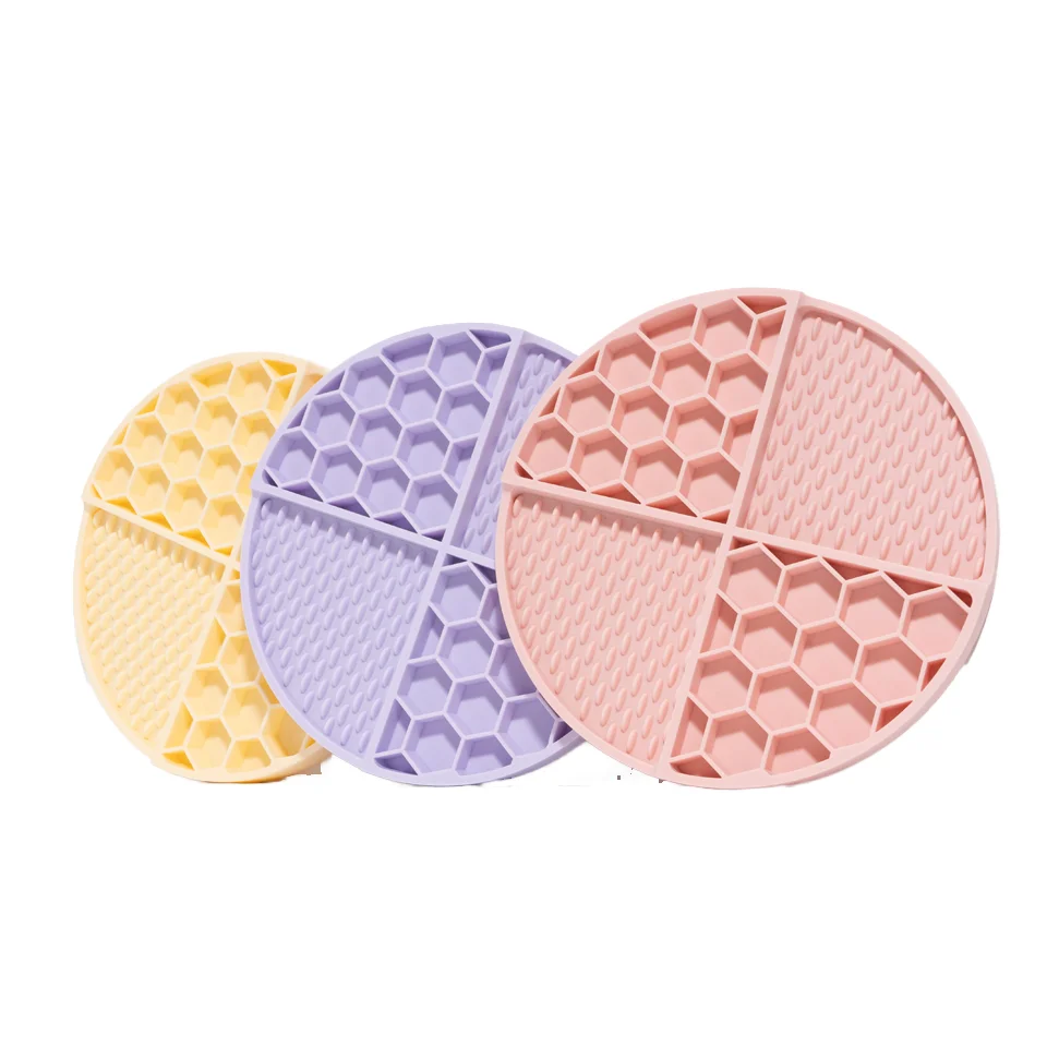 Wholesale Suction Licking Pad Non-Slip Anti-choking Pet Dog Cat Lick Mat Food-Grade Silicone Rounded Pet Slow Feeding Lick Mat Pack of 2