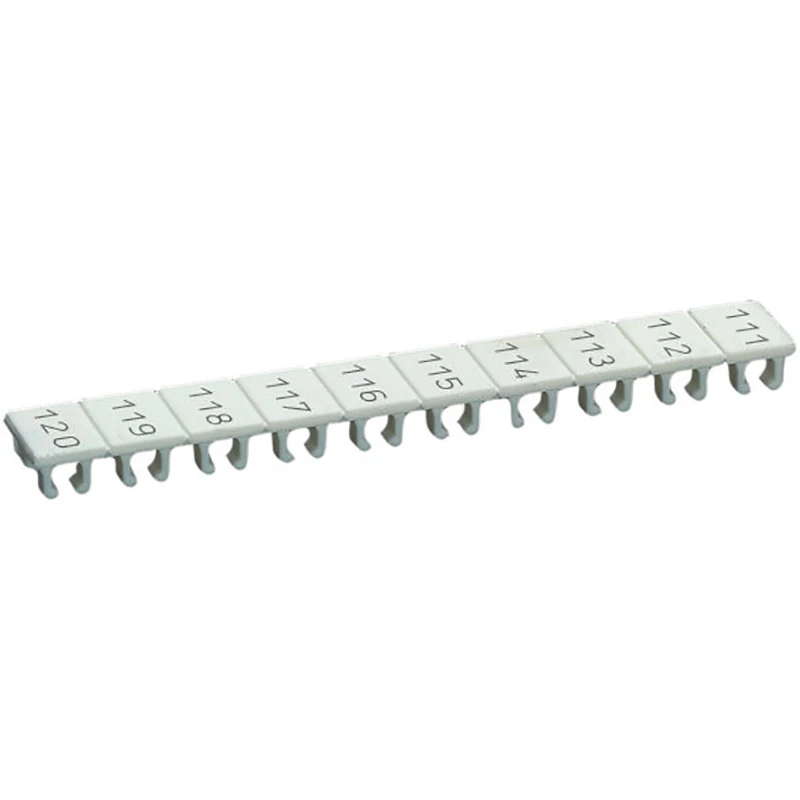 · · Marked with: 111-120 · · 10 tags per strip · · Modular spacing: 6mm · · for clear wire/termination point assignment