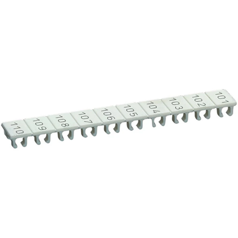 · · Marked with: 101-110 · · 10 tags per strip · · Modular spacing: 6mm · · for clear wire/termination point assignment