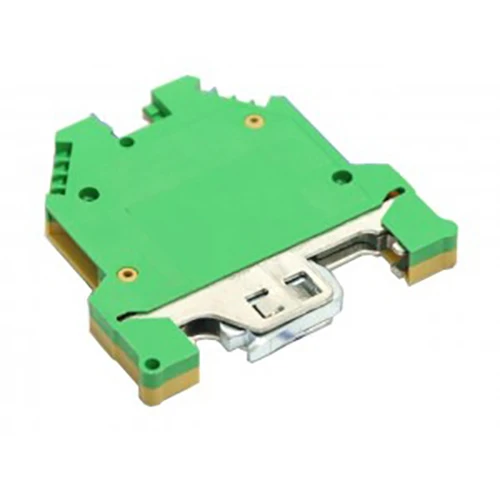 Wieland WK 4 SL/U Ground Terminal with screw connection for mounting on TS 35 and nominal cross section 4mm. It is not used in block assemblies · · · Nominal cross section 4 mm · · Number of levels 1 · · Number of clamp positions per level 2 · · Width/grid dimension 6mm · · Mounting method DIN rail (top hat rail)/G-rail · · Explosion-tested version “Ex e” Yes · · Rated voltage 800 V · · Rated impulse voltage 8Kv · · Closing plate required No · · Cross section 22-10 AWG