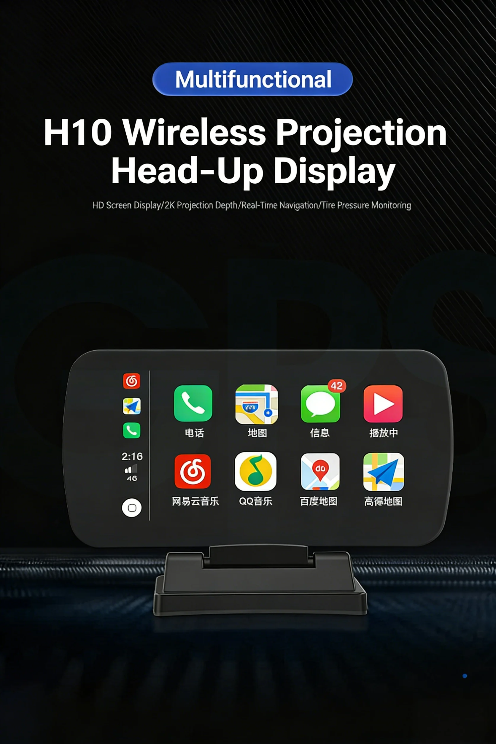 Wireless Car BLE Carplay Head Display Navigation F03 Google Map Free Window Projector Fatigue Driving Alarm Yian Driving Safety