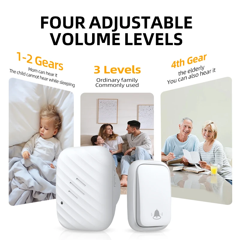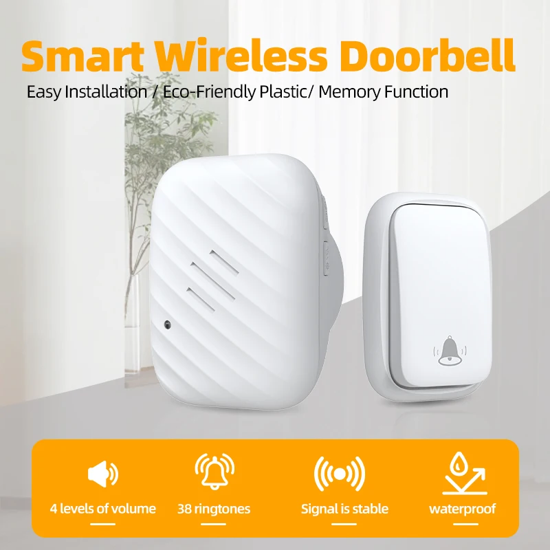 Wireless Doorbell Waterproof Ring Doorbells with US EU UK Plug Battery Transmitter 300m Range 36 Songs Household Door Bell Kit