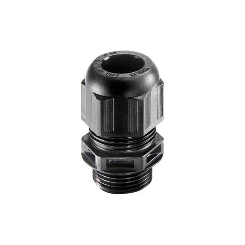 Technical Specifications Technical Specifications Cable gland Wrench width 46 mm Nominal thread size metric/PG 40 Thread length 12 mm RAL number 9005 Explosion-tested version No Bend radius protection/trumpet flare No Shock resistant Yes Halogen free Yes Suitable for cable outer diameter 16 – 28 mm Working temperature -40 – 100 °C Pitch thread 1.5 mm Hexagon angular dimension 51 mm Glass fibre reinforced No EMC-version No Flat cable sealing No Multi cable sealing No Locknut included No Separable (split) screw gland No Snapping in opening No For armoured cable No With strain relief Yes Screened No · Technical Data Sheet – Click to Download