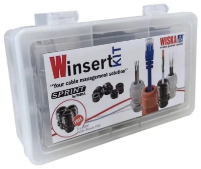 SPRINT® Insert kit WinsertKIT Includes: 10 x FFD (10101192) Sealing Inserts (flat cable insert), 5 x GFD (10109006) Sealing Inserts (split cable inserts), 10 x RDE (10062185) Sealing Inserts (reduction inserts), 5 x MFD (10060953) Sealing Inserts (multi-hole inserts). 3 x FREE ESKV Cable Glands (colours chosen at random) · · · M20 · · Halogen Free / UV Resistant · · 10 x FFD (flat cable insert) for T&E, 5 x GFD (split insert) for CAT 5 and 6 cable, 10 x RDE (reduction insert) for 318Y cable and LED, 5 x MFD (multi-hole insert) for shotgun coaxial cable, 5 x FFD (flat cable insert) for 2 twin and earth cables · · Colour: Black