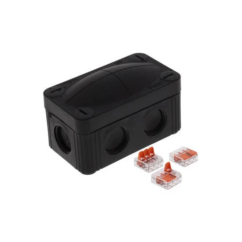 Wiska Junction Box 206/WW/3221/B IP66/67 c/w 3x 3Way WAGO Connectors 85x49x51mm Black