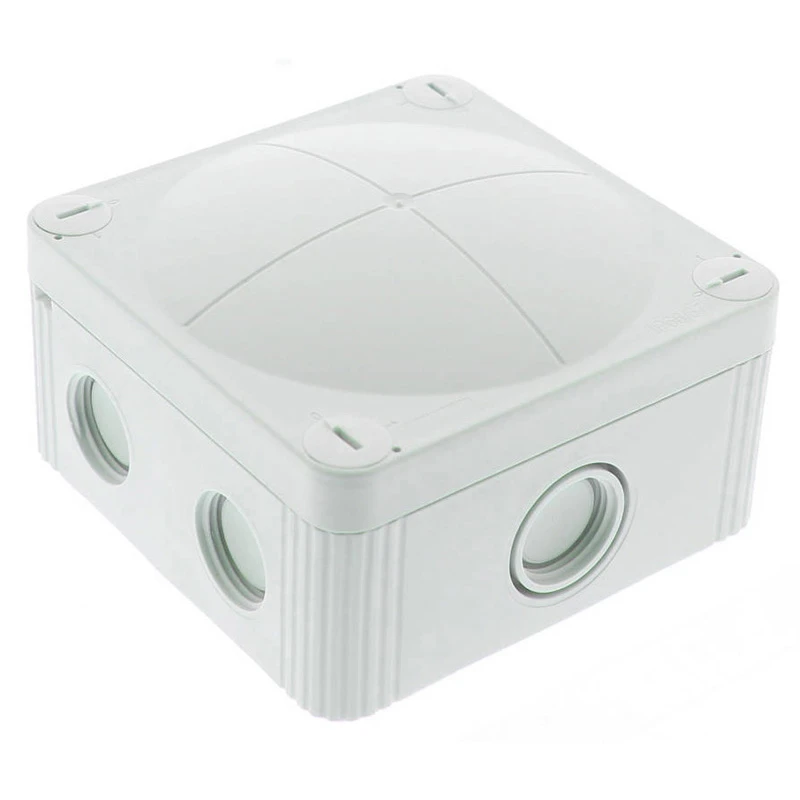 Technical Specifications  Technical Specifications Surface mounted box/housing Colour Grey Degree of protection (IP rating) IP66/IP67 Material Plastic Surface protection Untreated Mounting method Wall-/ceiling mounting Type of housing feed-through Thread and closing membrane Shape Square Number of entry points 9 Max. conductor cross section 2.5 mm² Length 95 mm Width 95 mm Depth 60 mm · Technical Data Sheet – Click to Download