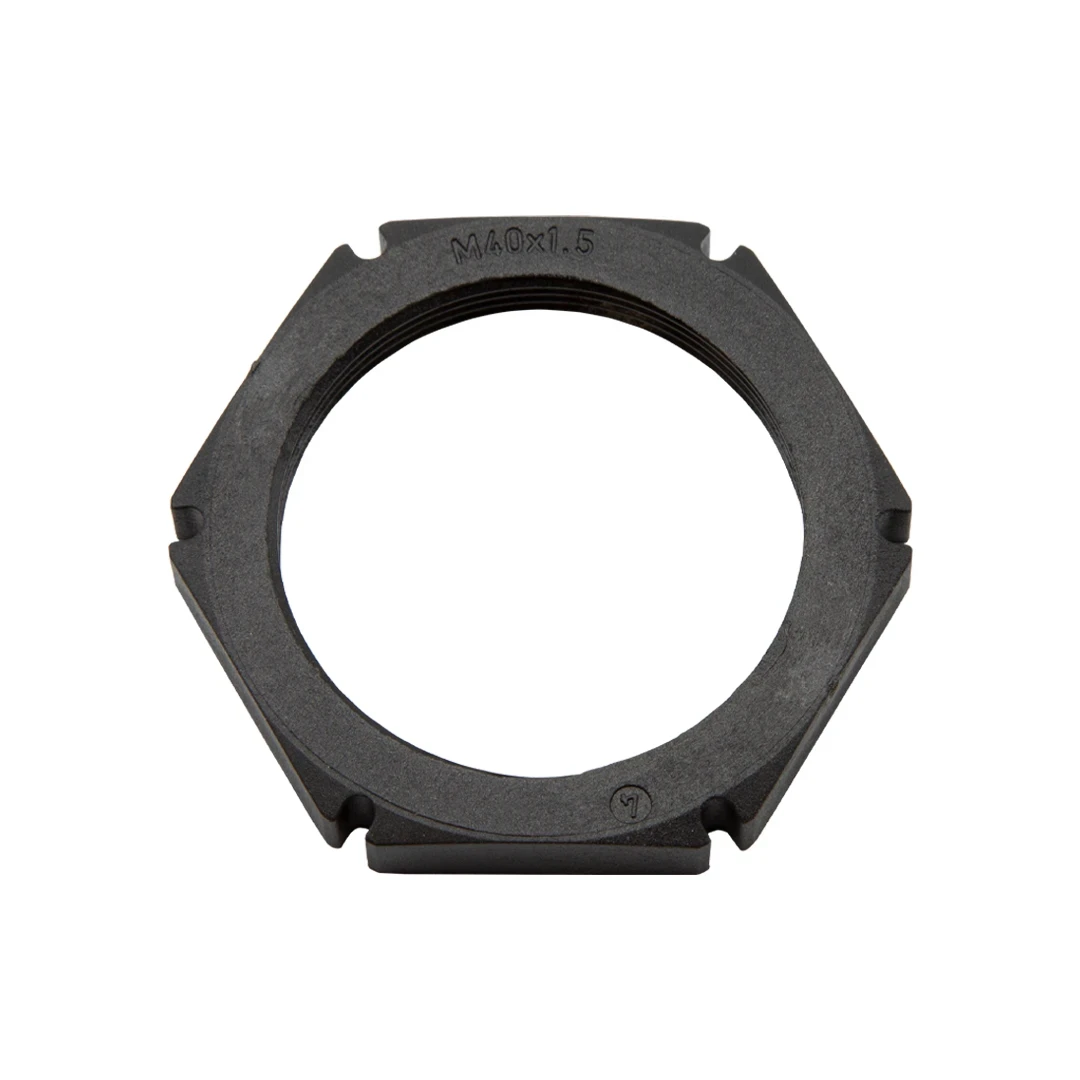 Wiska UK 10061785 SPRINT Locknut EMUG 40 M40 Black Polyamide · · · Product: Locknut · · Gland Material: Polyamide · · Gland Colour: Black · · Gland Size: M40 mm · · Length Min Max: 6 mm · · Standards: ROHS · · Polyamide, fibre reinforced · · Temp Range -40 °C – 100 °C · · Halogen free · · Suitable for 40mm cable glands
